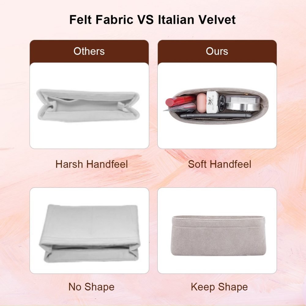 - All our bag organizers are elaborately handmade from high-qauality Italian velvet, instead of felt material, allowing for a lightweight feature and a softer hand feel.